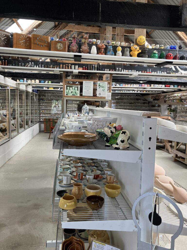 Hvis du ikke fik set kopper nok i loftet ved indgangen, så har du her endnu flere kaffekopper suppleret med sukker / flødesæt, kander og meget mere porcelæn, der hører til kaffebordet.