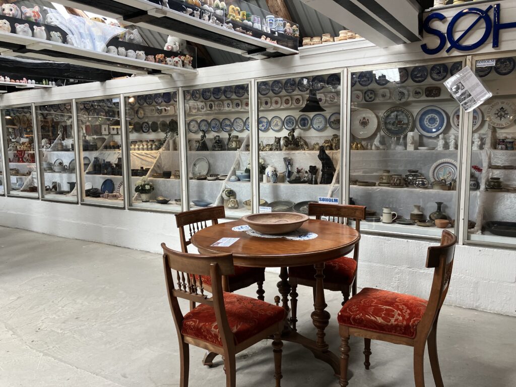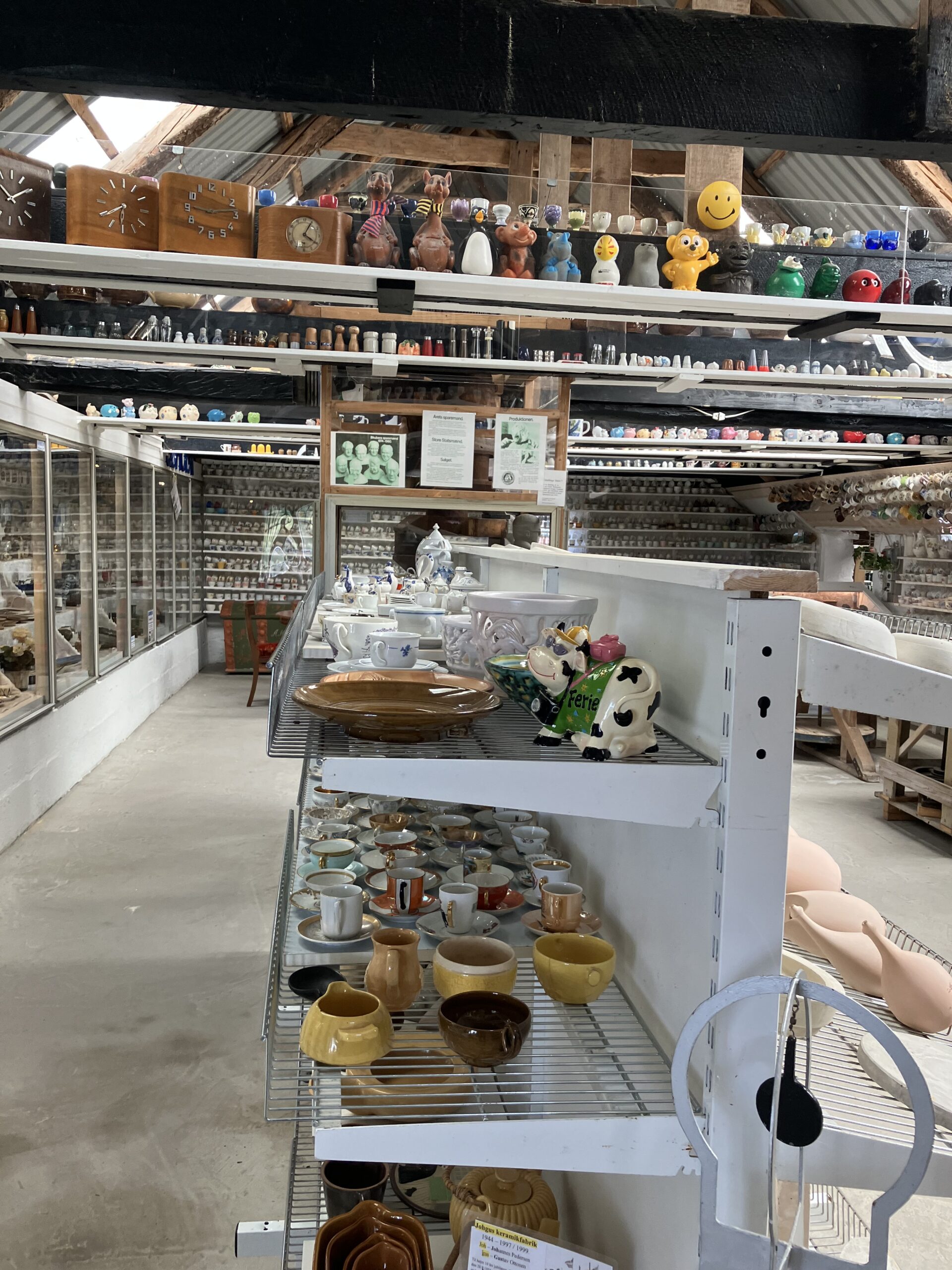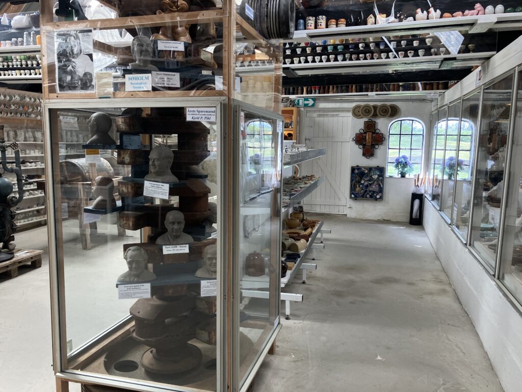 Langs hele den ene langvæk kan du se keramikprodukter fra de bornholmske værksteder og fabrikker – og vi er vist mange, der genkender ting fra vores barndomshjem her.