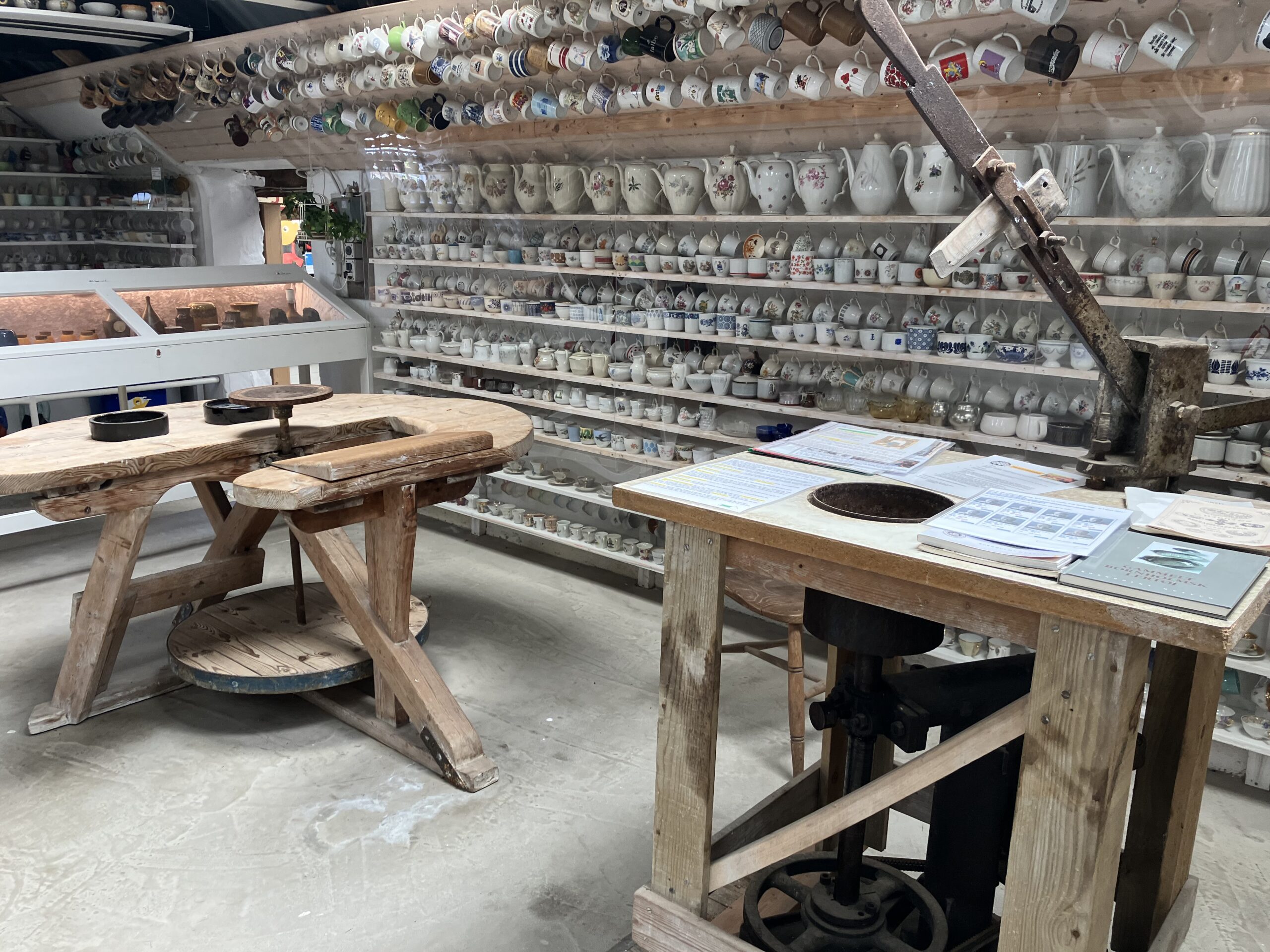 Du kan også se maskiner, der bruges til keramikproduktionen – lerpumpe, el-ovn mm.